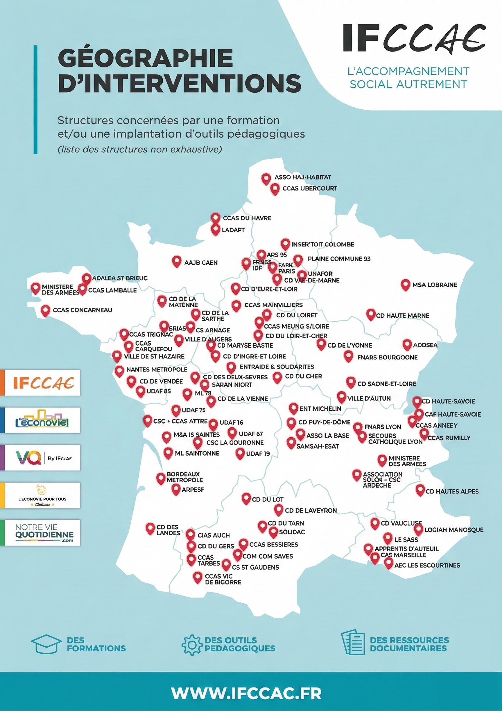 L'IFccac propose des parcours de développement de compétences pour les professionnels de l'action sociale (CESF, AS, EDUC, TISF, MJPM....) concernés par l'accompagnement social généraliste, l'AEB, les MASP, les mesures AESF, les MJAGBF, l'ASLL, l'AVDL, les PCB, l'intervention sociale à domicile, les actions collectives....