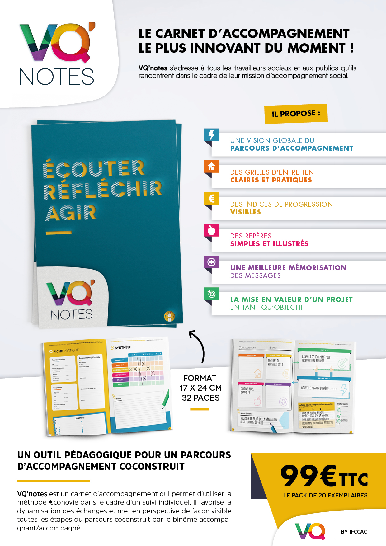 VQ’notes est un carnet d’accompagnement innovant qui permet d’utiliser la méthode €conovie dans le cadre d’un suivi individuel.