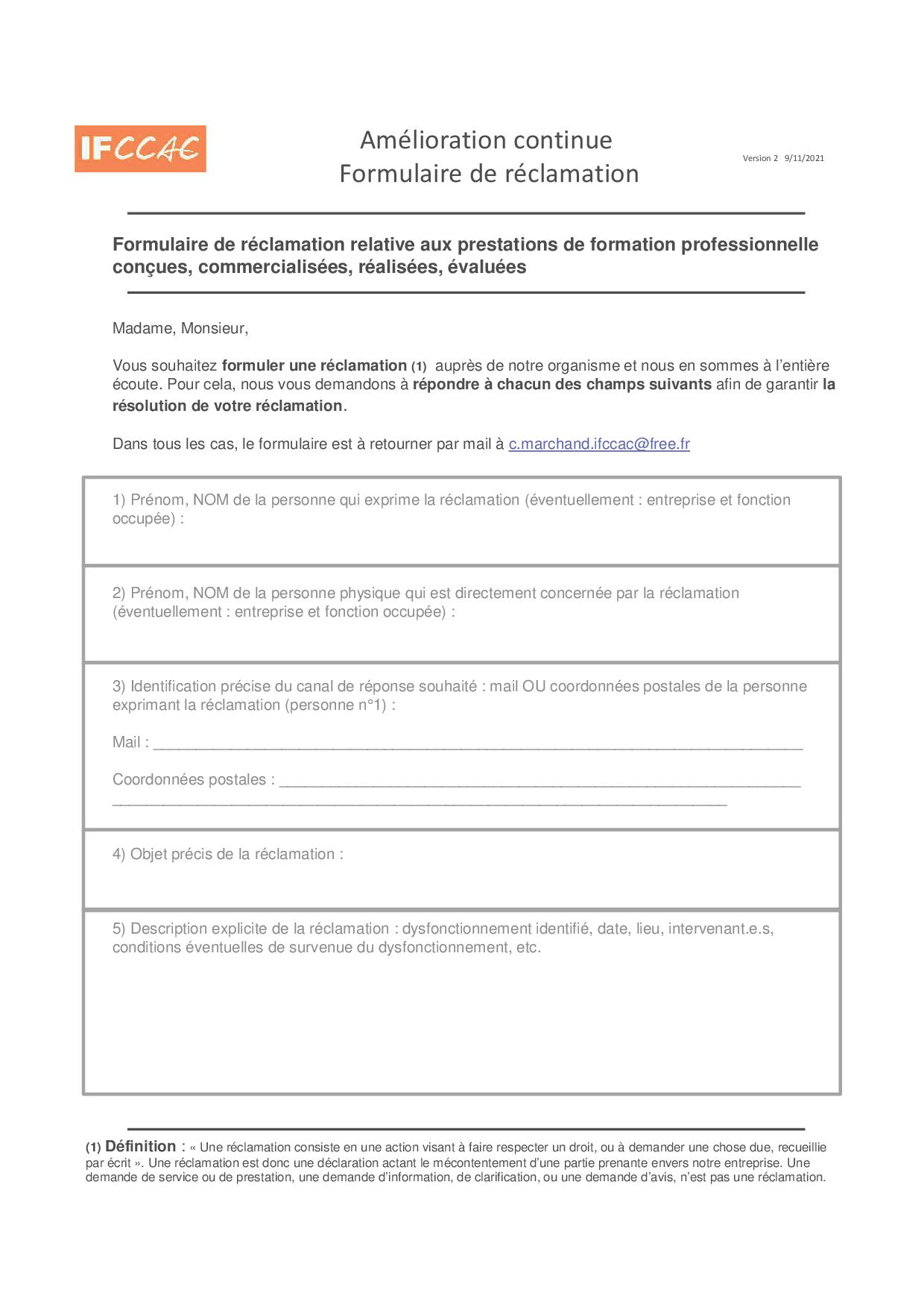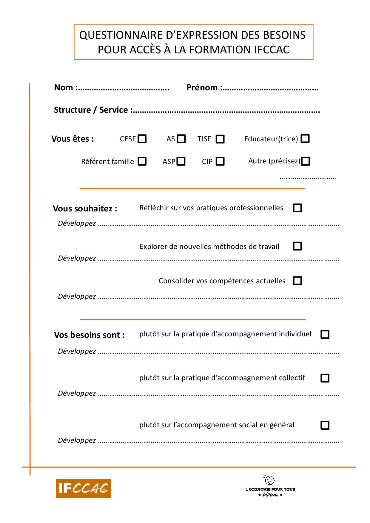 Télécharger le questionnaire ci-dessous , le remplir, le scanner et le renvoyer par mail à l’adresse : contact@ifccac.fr